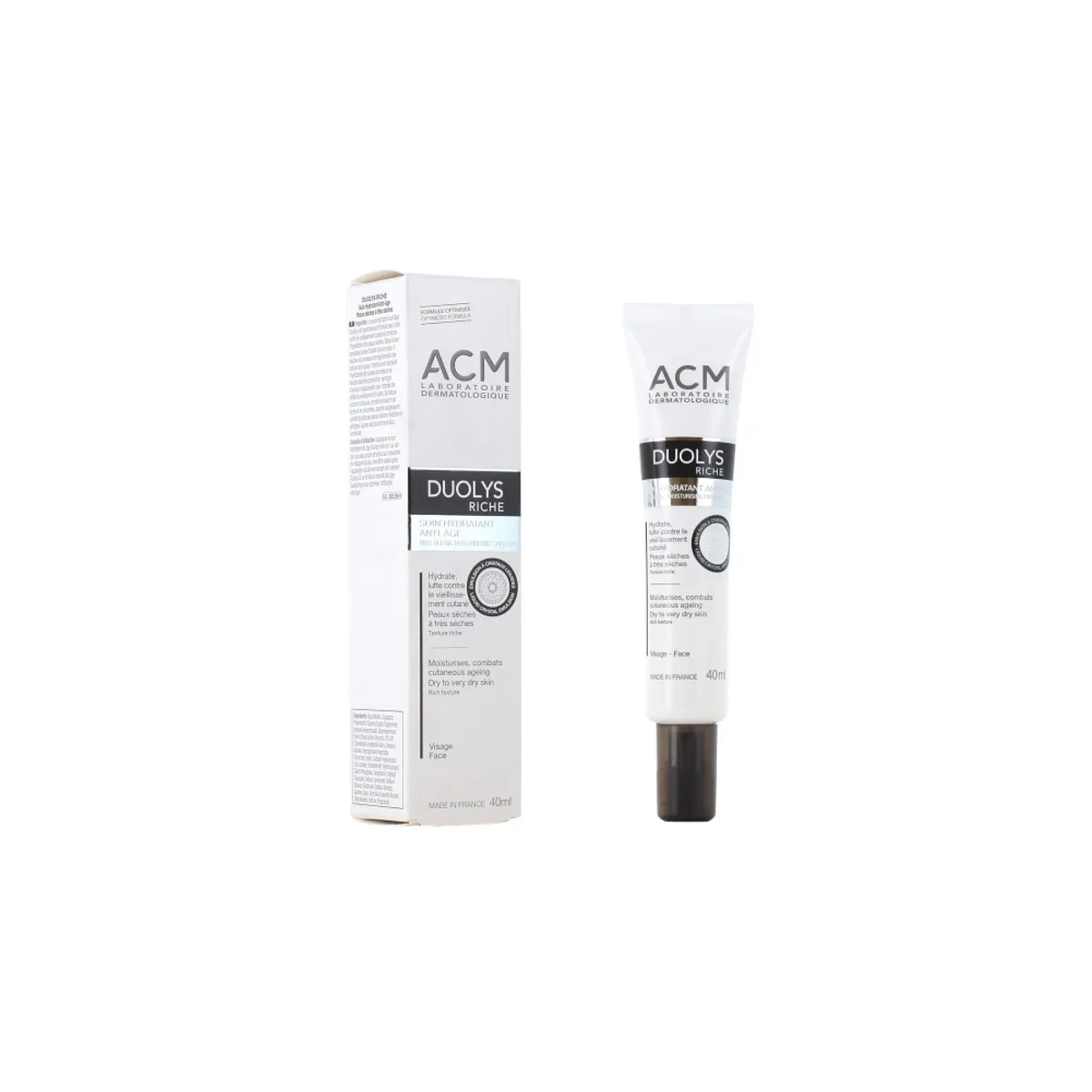 La crème riche anti-âge DUOLYS des Laboratoires ACM combat efficacement le vieillissement cutané en renforçant l'hydratation des peaux sèches à très sèches. Cette crème innovante à base d'acide hyaluronique et de céramides offre confort et hydratation durable à votre peau.