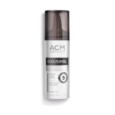 Le sérum intensif anti-âge DUOLYS HYAL d'ACM est un soin révolutionnaire qui lutte efficacement contre tous les signes du vieillissement cutané grâce à une association très complète d'actifs puissants.