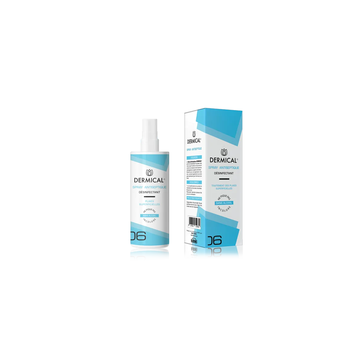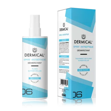 Le Spray Antiseptique DERMICAL® est une solution antiseptique innovante spécialement formulée pour désinfecter en douceur les plaies cutanées superficielles. Sa formule unique sans alcool permet une application indolore, idéale pour toute la famille, adultes et enfants.